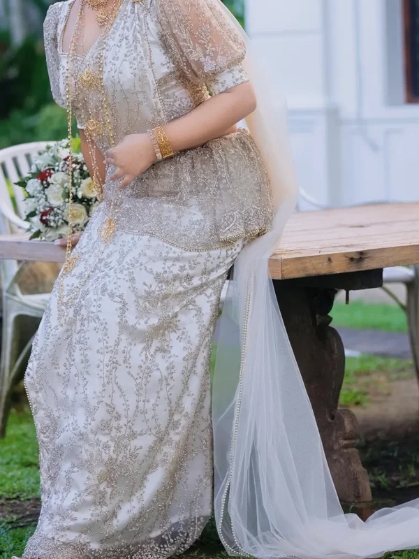 Elegant White Kandyan Bridal Saree with Pearl Bead Work – BRD1439