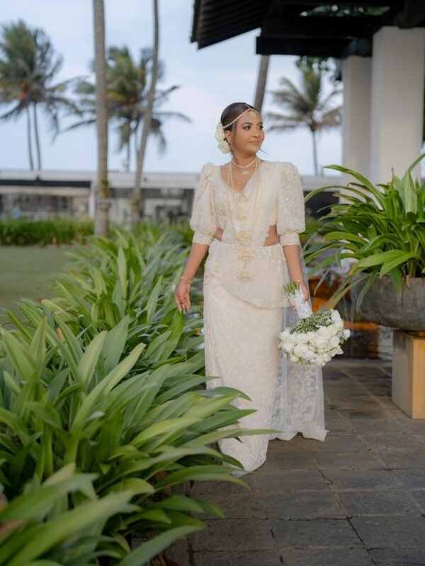 White Kandyan Bridal Saree with Puff Sleeves – BRD1357