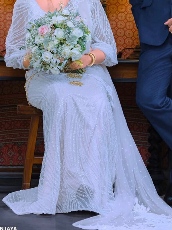 White Modern Kandyan Saree – BRD1451
