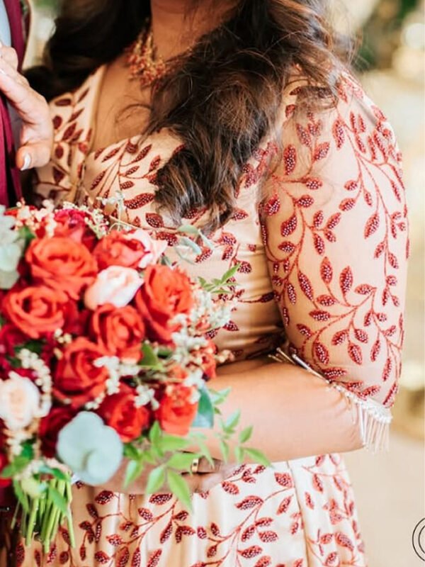 Peach & Red Embroidered Engagement Lehenga – BRD1571
