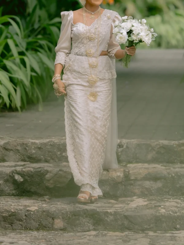 Elegant White Kandyan Bridal Saree with Pearl Bead Work – BRD1439