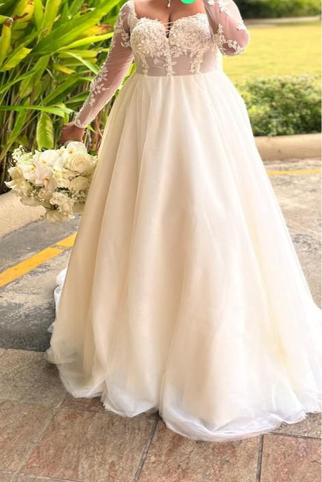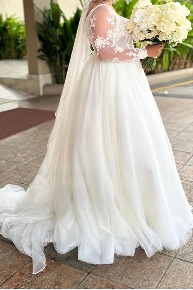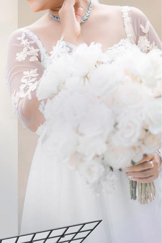 A dreamy white bridal gown that beautifully blends modern romance with timeless elegance.